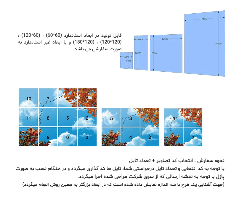مشخص کردن تعداد تایل درخواستی.تعداد تایل مورد نیاز خود را در کادر مربوط وارد نمایید و در صورت ثبت با سایز سفارشی با شماره تماس (09170793299) تماس بگیرید .